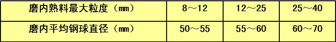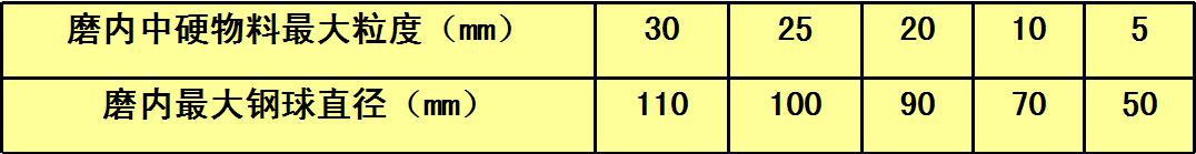 1.根據(jù)入磨物料粒徑確定磨內(nèi)最大球徑和平均球徑