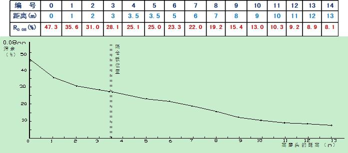把每個取樣點(diǎn)取得的試樣混合均勻后,作為該取樣點(diǎn)的平均試樣并編好號,防止搞錯,用0.08mm篩分別進(jìn)行篩析,測得各段的篩余百分?jǐn)?shù);然后以縱坐標(biāo)為測出的篩余%(細(xì)度),橫坐標(biāo)為取樣點(diǎn)離磨頭的距離(m),把篩析數(shù)據(jù),標(biāo)記在坐標(biāo)圖上、聯(lián)線,即為磨內(nèi)篩析曲線。