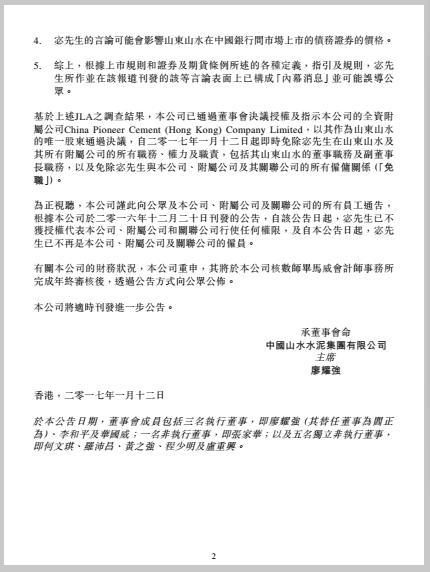 天瑞集團(tuán)控股山水水泥后,新山水水泥明顯出現(xiàn)了以老一派維權(quán)宓敬田為代表的派系與以天瑞高管為代表的山水水泥“新董事會(huì)”的爭(zhēng)斗,其內(nèi)部派系爭(zhēng)斗非常強(qiáng)烈。去年12月19日山水水泥上市公司發(fā)出公告,宓敬田因言論失職暫時(shí)免職,由趙永魁代其職,然而該公告很快又被撤銷,取而代之的是一份對(duì)趙永魁、高勇、劉德權(quán)、趙彬的免職文件,免職理由是嚴(yán)重違反集團(tuán)基本政治紀(jì)律,破壞山水集團(tuán)穩(wěn)定發(fā)展的大局,影響惡劣。