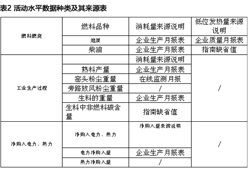 水泥企業(yè)涉及到的所有活動水平數(shù)據(jù)種類及來源詳見表2