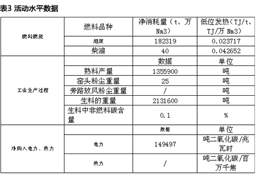 水泥企業(yè)活動水平數(shù)據(jù)詳見表3