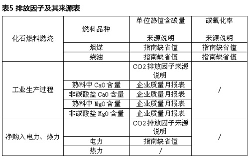 水泥企業(yè)涉及到的所有排放因子種類及來源詳見表5。