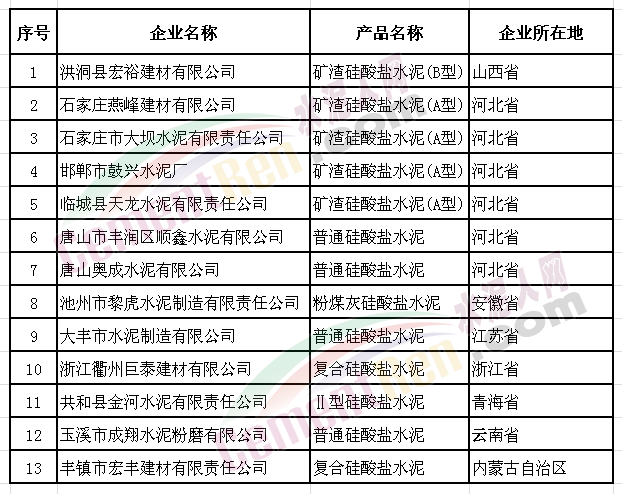 監(jiān)督檢驗不合格的13家水泥企業(yè)名單