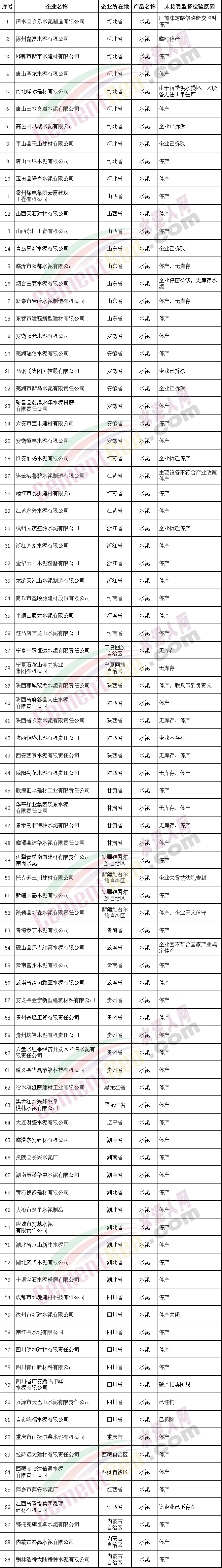 未接受監(jiān)督檢驗的89家水泥企業(yè)名單