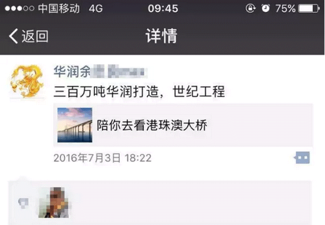 朋友圈信息截圖