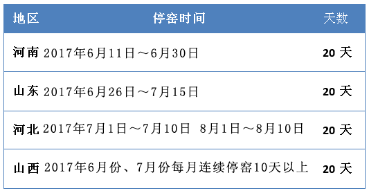 最新晉冀魯豫四省錯峰生產時間計劃表