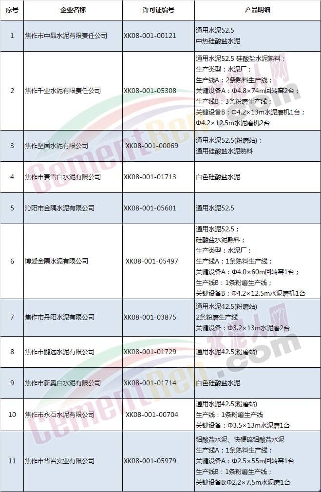 河南焦作分布水泥熟料及水泥粉磨企業(yè)多家。具體名單如下: