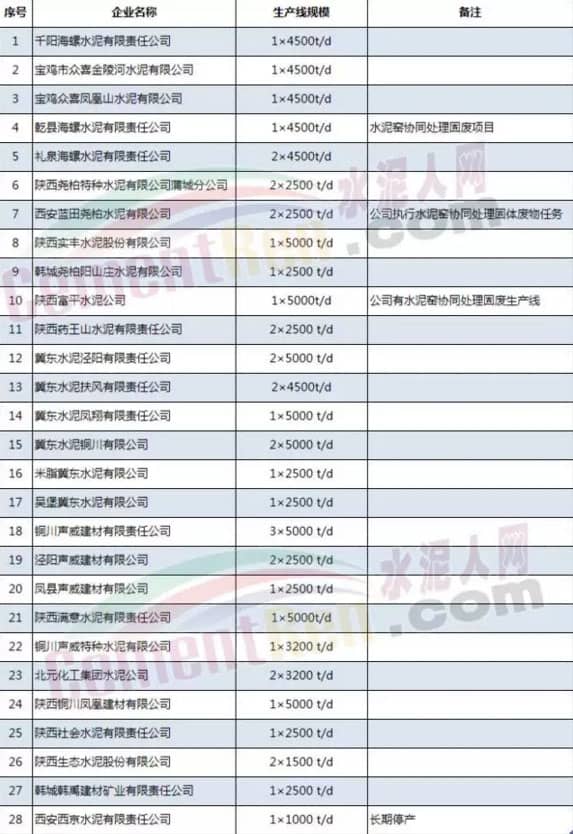 陜西省水泥熟料及水泥粉磨站企業(yè)名單如下: