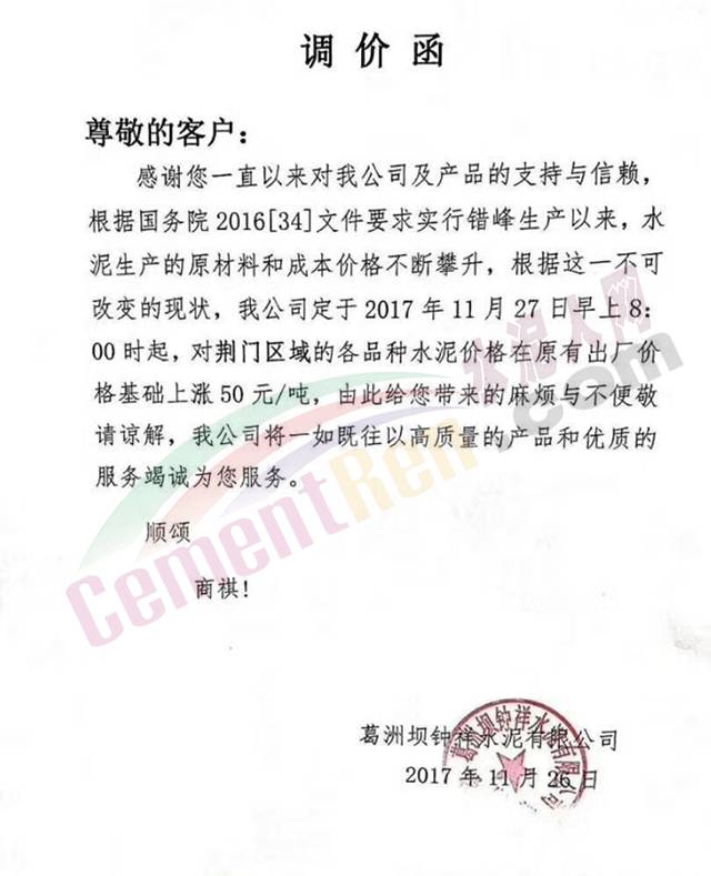 水泥人網(wǎng)29日消息:近兩日 ,南方水泥、海螺水泥、華新水泥、中材水泥、冀東水泥、葛洲壩水泥等22家企業(yè)集體發(fā)布漲價通知,湖南、湖北、廣西地區(qū)水泥行業(yè)開啟新一輪漲價。此前水泥人網(wǎng)公眾平臺曾發(fā)表各地水泥直逼500元/噸 水泥市場開啟“打劫”模式(點擊閱讀)一文,引來近十萬人的關(guān)注,而僅僅數(shù)日之后,各地水泥價格直逼600元/噸,距離600元/噸只差一張漲價函了。