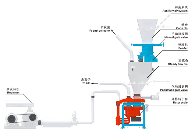 菲斯特形式轉(zhuǎn)子秤把傳統(tǒng)的煤粉定量喂煤、計(jì)量和鎖風(fēng)功能集成到一臺(tái)裝置中,專用于采用氣力輸送煤粉的定量喂煤。該系統(tǒng)噪音小、結(jié)構(gòu)緊湊、維護(hù)方便,已廣泛應(yīng)用于全球水泥行業(yè)的定量喂煤。