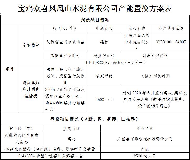 附件:寶雞眾喜鳳凰山水泥有限公司產(chǎn)能置換方案表