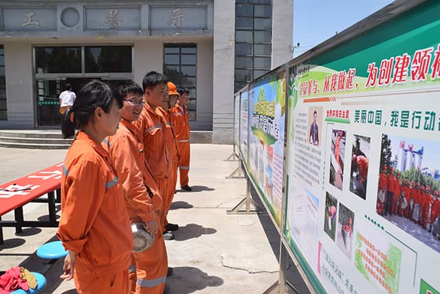 通過在生活區(qū)、生產(chǎn)區(qū)活動現(xiàn)場懸掛宣傳條幅、電子屏幕播放“美麗中國,我是行動者”環(huán)境日主題圖片、向公司員工發(fā)放環(huán)保倡議書、“共簽環(huán)境日主題橫幅”等內(nèi)容,有效烘托了本次環(huán)境日主題。進一步倡導全員共同履行環(huán)保綠色生產(chǎn)生活方式,共同參與到生態(tài)文明建設(shè)和環(huán)境保護的工作中。