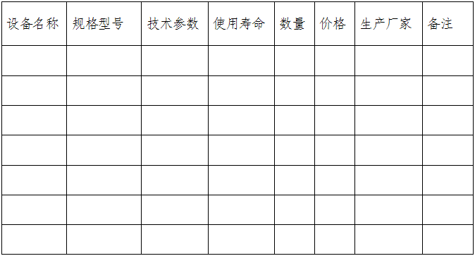 設備名稱規(guī)格型號技術參數(shù)使用壽命數(shù)量價格生產廠家備注