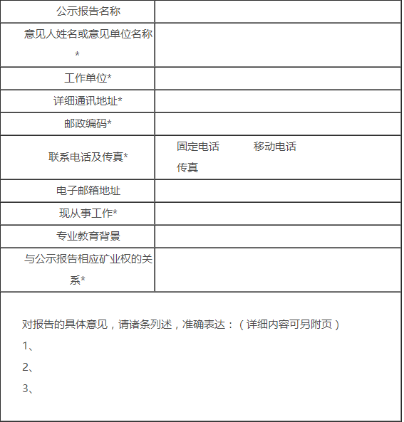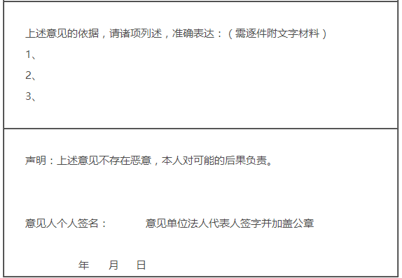 注:本意見表書面寄送有效。標記*的意見人信息未填寫的,自然資源主管部門不予受理。
