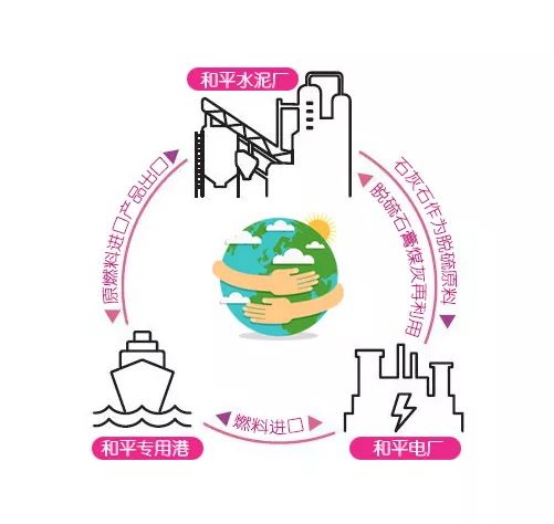 臺泥和平廠方圓一公里內(nèi),有工業(yè)港、水泥廠、發(fā)電廠三大項目,簡稱“港、廠、電”三合一。和平港作為廠區(qū)的吐納口,水泥廠、發(fā)電廠所需原物料由和平港進(jìn)口,水泥廠制成之水泥產(chǎn)品亦由和平港出口,水泥廠與發(fā)電廠還能就近互相提供制程所需原料,大幅降低對環(huán)境的沖擊,得以發(fā)揮“水泥+能源+環(huán)保”三合一的最大效應(yīng)。