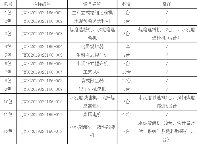 包4:近五年(2014年1月1日以來(lái))內(nèi)投標(biāo)人在中國(guó)大陸至少有兩個(gè)生產(chǎn)能力4000噸/天及以上熟料水泥生產(chǎn)線同類(lèi)設(shè)備供貨業(yè)績(jī)(含改造項(xiàng)目)。