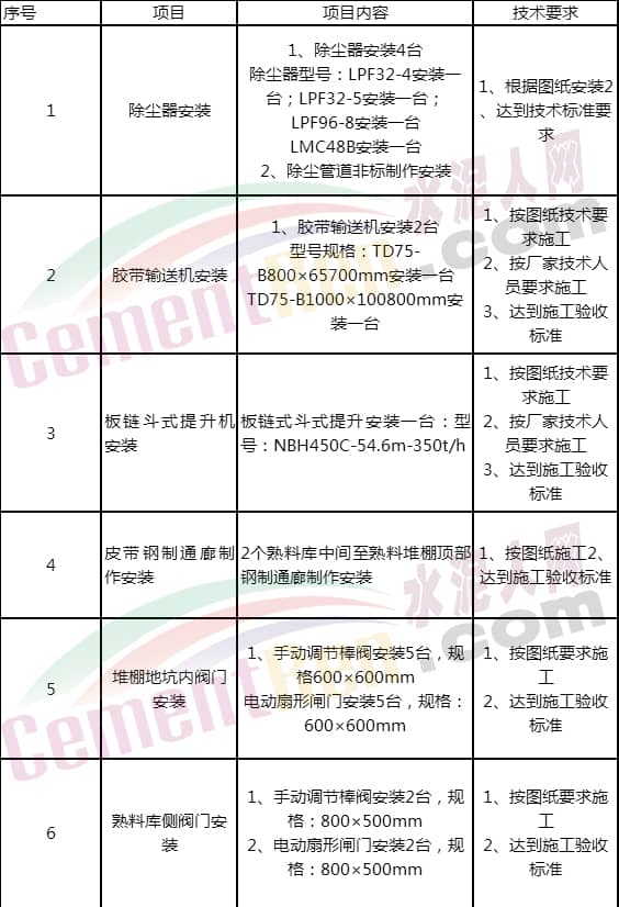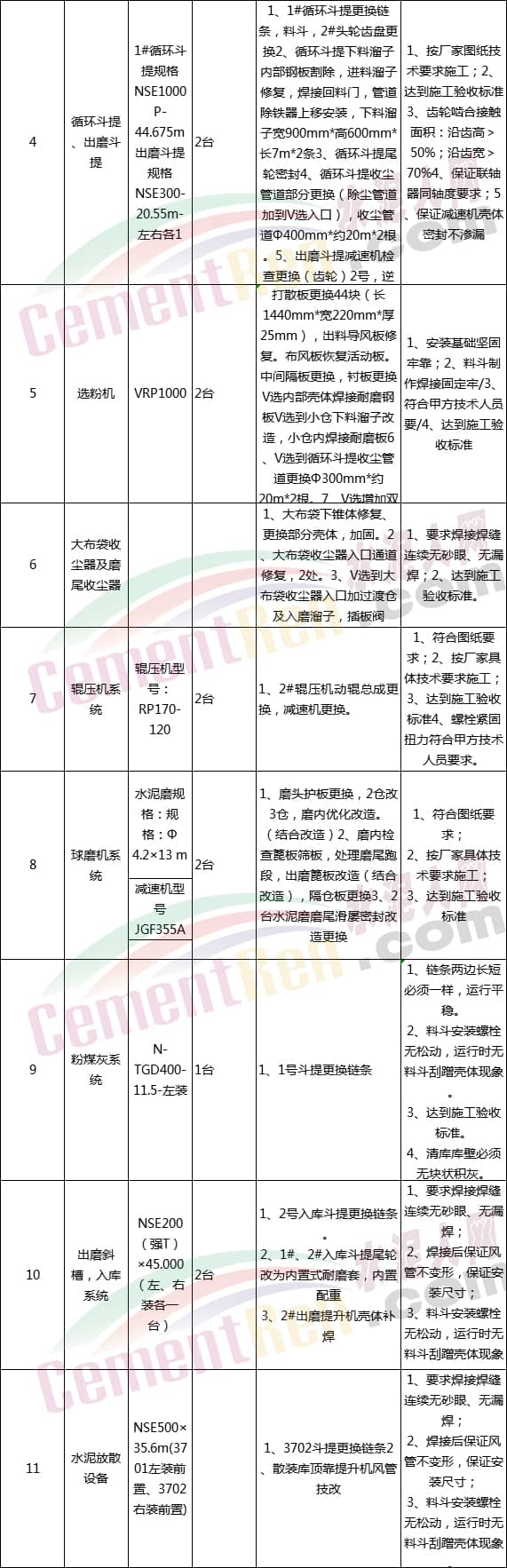 第一標(biāo)段:水泥分廠設(shè)備大修,具體內(nèi)容見(jiàn)下表: