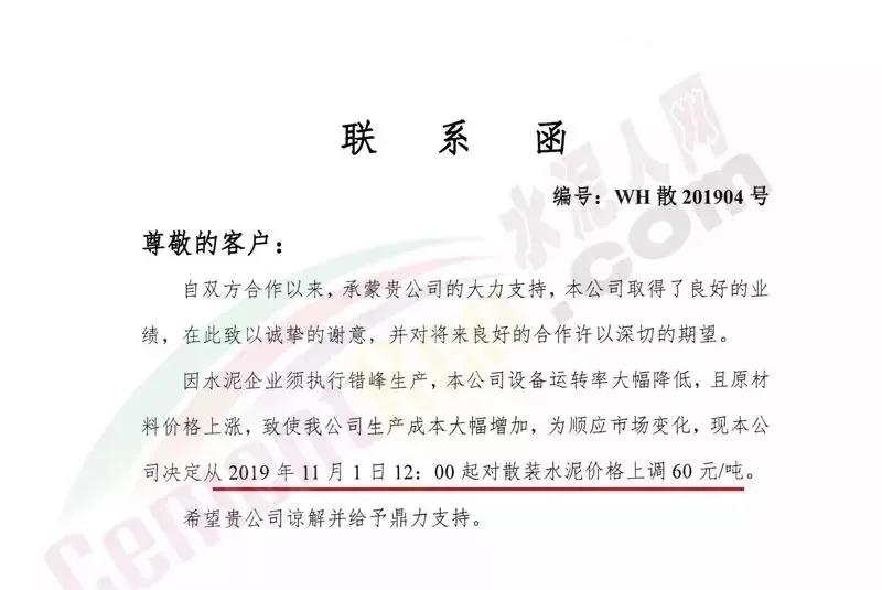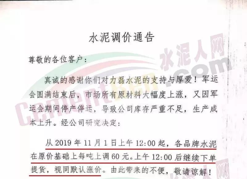 錦榮水泥自10月31日以來水泥價(jià)格連續(xù)上漲11次,其中從11月10日到11月18日,9天時(shí)間該企業(yè)連發(fā)了9張調(diào)價(jià)函。經(jīng)過11輪上漲,該企業(yè)P.O42.5水泥累計(jì)漲價(jià)高達(dá)300元/噸,目前P.O42.5散裝含票出廠價(jià)高達(dá)680元/噸,加上運(yùn)費(fèi)到位核心區(qū)域價(jià)格已突破700元/噸。 河南三門峽市澠池仰韶水泥廠自11月8日起連發(fā)三份漲價(jià)函,截止11月13日,澠池仰韶水泥42.5級散裝水泥出廠價(jià)為610元/噸,52.5級散裝水泥出廠價(jià)為710元/噸。近期河南區(qū)域水泥價(jià)格又出現(xiàn)持續(xù)暴跌現(xiàn)象,兩天就跌了150元/噸,而且近期還在向下調(diào)整,跌價(jià)空間幾乎把之前的漲幅全部抹平。這種大漲大跌的市場環(huán)境,是極為不正常的。福建區(qū)域粉磨站“沒米了”,漲30元/噸福建區(qū)域熟料供應(yīng)緊張,部分粉磨站企業(yè)通知無水泥可賣。某水泥粉磨企業(yè)負(fù)責(zé)人對水泥人網(wǎng)表示:“沒米了!” 福建區(qū)域企業(yè),一直都是從廣東及廣西采購熟料,近來枯水加上治超,熟料到位價(jià)格上漲。福建區(qū)域多家企業(yè)便隨之上調(diào)水泥價(jià)格,上調(diào)幅度30元/噸。天津漲價(jià),拉開了京津冀區(qū)域的漲價(jià)的序幕21日區(qū)域主導(dǎo)企業(yè)集體上調(diào)水泥價(jià)格。北京金隅水泥經(jīng)貿(mào)有限公司天津分公司發(fā)調(diào)價(jià)通知,由于目前企業(yè)受環(huán)保錯峰、道路運(yùn)輸治理等因素的影響,導(dǎo)致企業(yè)水泥庫存較低;同時(shí),礦粉等原材料價(jià)格持續(xù)走高、京津冀東地區(qū)環(huán)保力度加大,環(huán)保投入增加,水泥生產(chǎn)成本大幅上漲。企業(yè)自11月21日8時(shí)起,PO42.5及以上規(guī)格散裝水泥產(chǎn)品出廠價(jià)格在原價(jià)格基礎(chǔ)上上調(diào)20元/噸。 陜西是兩輪漲價(jià),共漲60元/噸,遭遇河南水泥車“搶購”本月15日前后陜西關(guān)中地區(qū)冀東,聲威,堯柏等多家主導(dǎo)企業(yè)通知上調(diào)水泥價(jià)格,漲幅30元/噸。18日前后大批河南水泥運(yùn)輸車到陜西關(guān)中區(qū)域調(diào)運(yùn)水泥,令區(qū)域內(nèi)庫存減少,部分企業(yè)再次上調(diào)30元/噸。一片漲勢之中唯貴州區(qū)域遭遇“寒冬”,水泥價(jià)格低到200元以下,甚至有局部區(qū)域出廠價(jià) 180元/噸左右。1200元~180元,1020元的差價(jià),是水泥行業(yè)冰火兩重天的現(xiàn)狀。目前的水泥價(jià)格似乎已處在了“失控”邊緣。部分企業(yè)又開啟了大票模式,在今年斷供后又開售2020年的水泥期貨。與上年相比,華東上海周邊區(qū)域似乎較平靜。上年末,華東區(qū)域水泥價(jià)高,下游競價(jià)銷售,出現(xiàn)千元左右一噸的水泥。后隨著華南廣西區(qū)域熟料和水泥到位,價(jià)格才逐步趨于平穩(wěn)。今年1季度下游施工企業(yè)提前備貨,也為今年華東區(qū)域的市場穩(wěn)定提前做了“鋪墊”。另據(jù)消息稱,華東沿海區(qū)域今年以來一直有大企業(yè)采購進(jìn)口熟料到港,區(qū)域內(nèi)熟料供應(yīng)平穩(wěn),繼而水泥價(jià)格也處于穩(wěn)中有漲態(tài)勢。