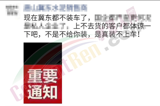唐山市豐潤區(qū)生態(tài)環(huán)境保護(hù)工作領(lǐng)導(dǎo)小組辦公室文件要求每日20時(shí)至次日8時(shí)禁止運(yùn)輸車輛進(jìn)入廠區(qū)內(nèi)。部分企業(yè)因庫容量較小,為保供重點(diǎn)客戶對部分經(jīng)銷商客戶暫停供應(yīng)。區(qū)域內(nèi)絕大多數(shù)水泥企業(yè)都停止售賣水泥了,連區(qū)域龍頭企業(yè)冀東水泥都不裝車了。