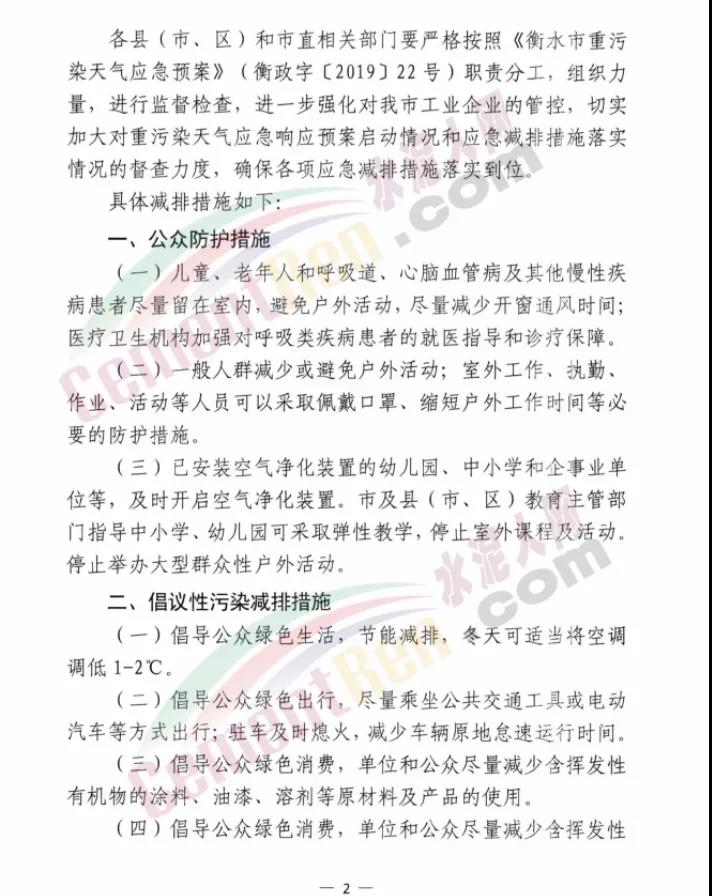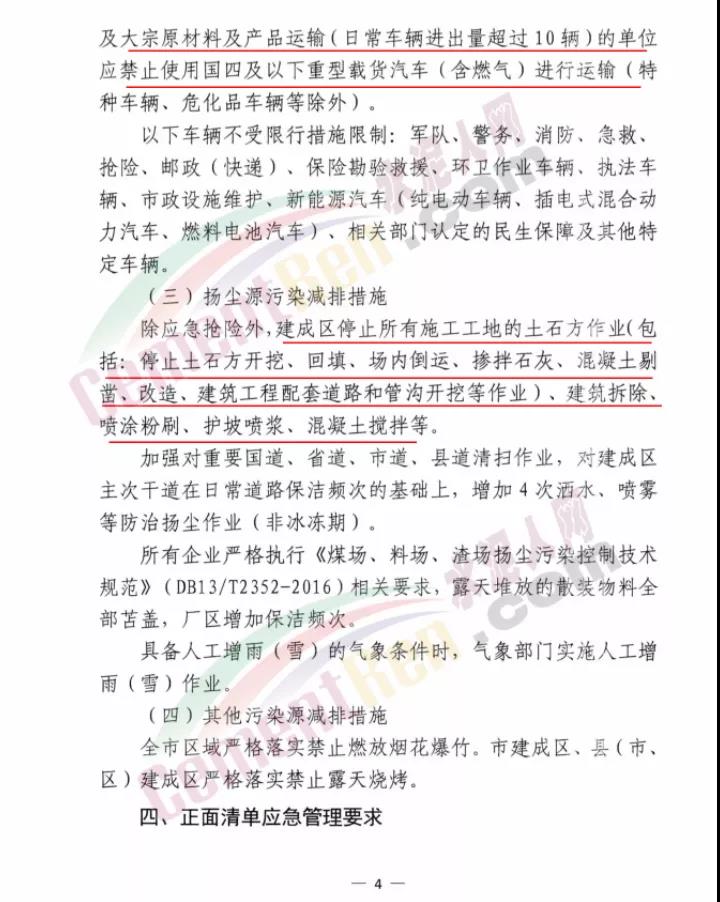 衡水市大氣污染防治工作領導小組辦公室發(fā)文:定于2020年11月9日8時啟動Ⅱ級應急響應,解除時間另行通知。工業(yè)企業(yè)嚴格按照《2020-2021年衡水市工業(yè)企業(yè)應急減排清單(報審版)》的清單中橙色預警減排措施執(zhí)行。除應急搶險外,建成區(qū)停止所有施工工地的土石方作業(yè)(包括:停止土石方開挖、回填、場內(nèi)倒運、摻拌石灰、混凝土剔鑿、改造、建筑工程配套道路和管溝開挖等作業(yè))、建筑拆除、噴涂粉刷、護坡噴漿、混凝土攪拌等。