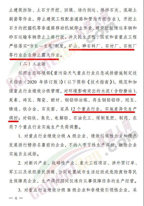 (二)工業(yè)源,規(guī)范和加強(qiáng)重點(diǎn)行業(yè)績(jī)效分級(jí)管理,對(duì)環(huán)境影響突出的水泥(含粉磨站)、炭素、磚瓦、陶瓷、耐材、石灰窯等 12 個(gè)重點(diǎn)行業(yè),實(shí)施差異化生產(chǎn)調(diào)控;對(duì)鋼鐵、焦化、電解鋁、石油化工等7 個(gè)重點(diǎn)行業(yè)實(shí)施生產(chǎn)負(fù)荷調(diào)整。