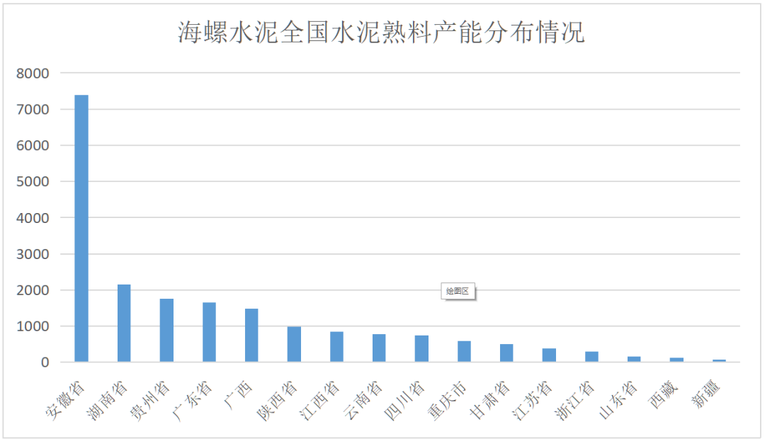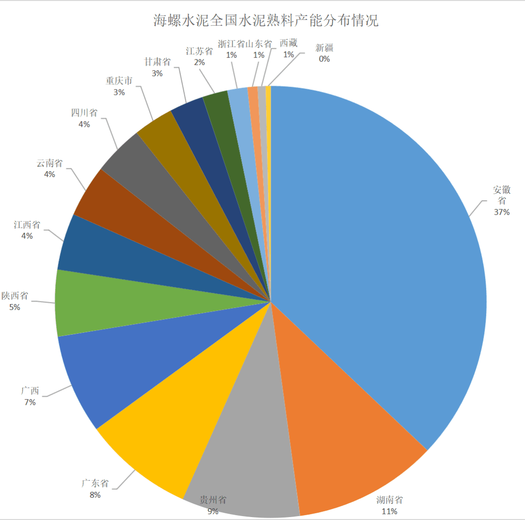 從各地區(qū)水泥熟料產(chǎn)能的占比情況來看,截至目前,安徽依然是海螺水泥的大本營,熟料產(chǎn)能占海螺水泥熟料總產(chǎn)能的37%;湖南海螺水泥熟料產(chǎn)能占海螺水泥熟料總產(chǎn)能的11%;其次是貴州省,占海螺水泥熟料總產(chǎn)能的9%。這三個(gè)地區(qū)海螺水泥熟料總和占到海螺水泥熟料總產(chǎn)能的57%,截至目前,海螺水泥在各地區(qū)的熟料產(chǎn)能占比情況如圖2所示。