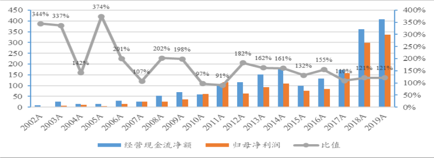 2016 年至今良好的利潤和現(xiàn)金流使海螺水泥資產(chǎn)負(fù)債表的極大修復(fù),資產(chǎn)負(fù)債率值下降到 20%的水平;同時(shí)海螺水泥分紅相對(duì)不高,致使凈資產(chǎn)累計(jì),在凈利潤難以繼續(xù)大幅增長的情況下凈資產(chǎn)收益率水平提升有一定壓力。上市以來海螺水泥礦山資源優(yōu)勢(shì)、銷售成本優(yōu)勢(shì)提供優(yōu)異的現(xiàn)金流,支撐海螺水泥資本開支。可以看到在整個(gè)產(chǎn)能擴(kuò)張階段主要依靠經(jīng)營凈現(xiàn)金流支撐,股權(quán)融資和債券融資數(shù)額均較少。海螺水泥對(duì)下游商混、渠道市場(chǎng)議價(jià)能力較強(qiáng)也能在現(xiàn)金流中反應(yīng)。資產(chǎn)負(fù)債率方面,上市之初產(chǎn)能快速擴(kuò)張致使資產(chǎn)負(fù)債率快速上升,2007-2008 年的股權(quán)融資 156 億元使資產(chǎn)負(fù)債率從 60%以上降至 40%,2011—2013 年發(fā)行企業(yè)債并購產(chǎn)能使資產(chǎn)負(fù)債率有所上升,而后隨著資本開支減少、利潤增長,負(fù)債率快速下降 20%,大幅優(yōu)于行業(yè)其他公司和絕大部分其他周期性行業(yè)龍頭公司。海螺水泥良好資產(chǎn)負(fù)債表和儲(chǔ)備的大量現(xiàn)金賦予企業(yè)較強(qiáng)風(fēng)險(xiǎn)抵御能力,并能在新增產(chǎn)能受禁的情況下借機(jī)并購?fù)卣巩a(chǎn)能、進(jìn)入其他行業(yè)。根據(jù)我們預(yù)測(cè),到 2020 年底海螺水泥現(xiàn)金和理財(cái)產(chǎn)品總額將達(dá)到 900 億元。近幾年現(xiàn)金凈流額如圖3所示。