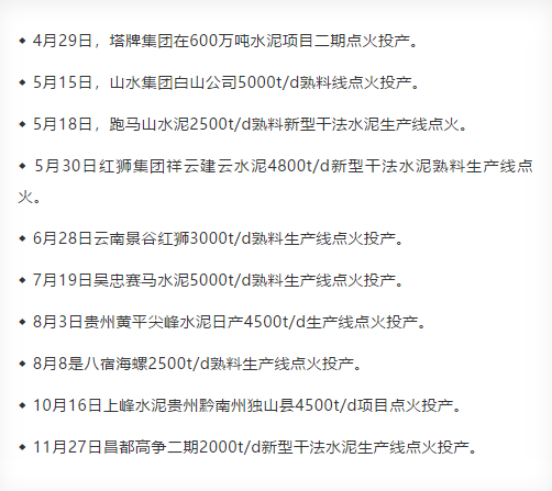 塔牌、紅獅、山水等水泥項(xiàng)目投產(chǎn) 涉及年產(chǎn)能1614萬(wàn)噸