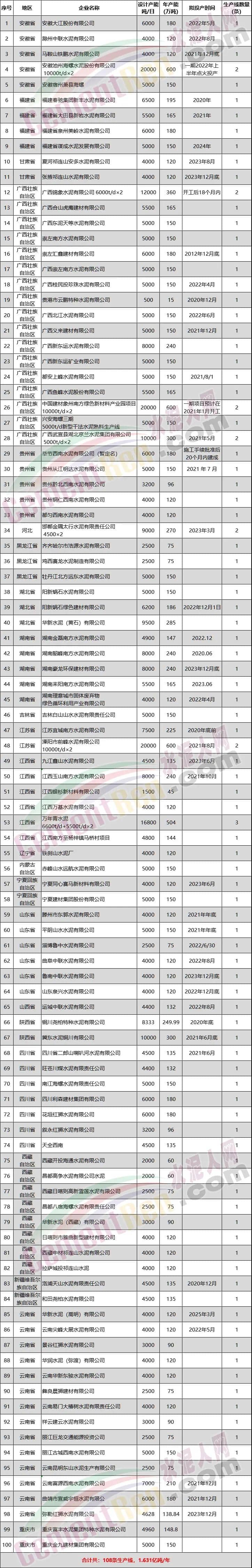 驚訝!海螺、紅獅、塔牌、山水等新建108條水泥生產(chǎn)線!