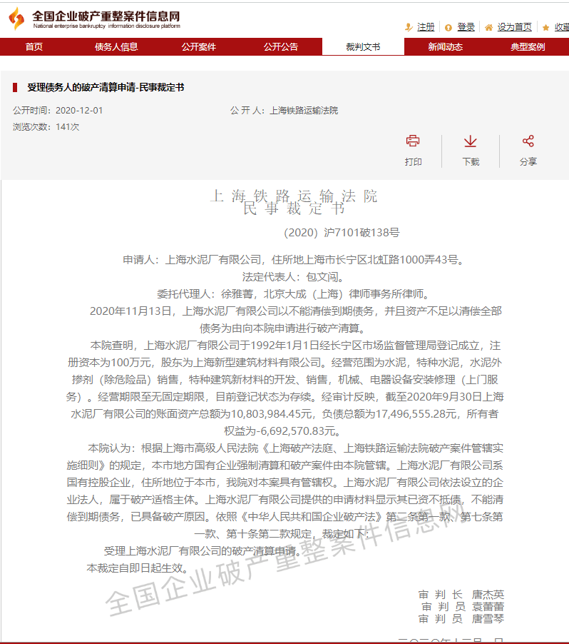 此前,水泥人網(wǎng)曾報道多起水泥企業(yè)破產(chǎn)清算的案例,可見類似的情形并不少見。全國企業(yè)破產(chǎn)重整案件信息網(wǎng)數(shù)據(jù)顯示,多家水泥企業(yè)被指定了破產(chǎn)清算管理人。