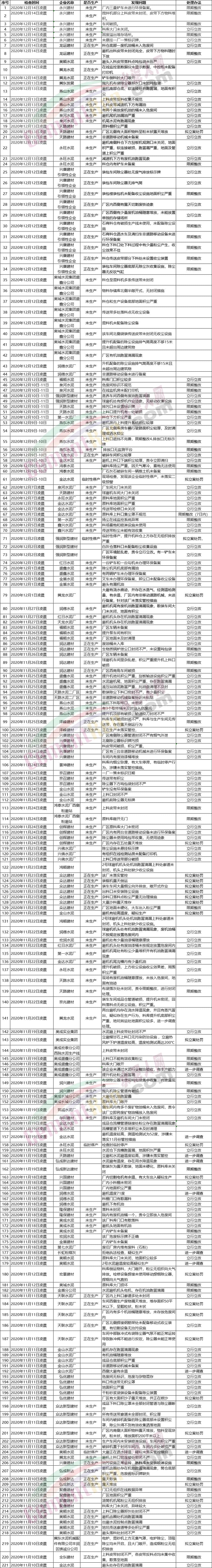當(dāng)日發(fā)現(xiàn)問題需進(jìn)一步調(diào)查的,多為企業(yè)關(guān)鍵設(shè)備磨機(jī)溫度較高,涉嫌未落實(shí)管控,或?yàn)榕R時(shí)停產(chǎn)。還有企業(yè)拒絕執(zhí)法檢查,疑似在生產(chǎn)的。