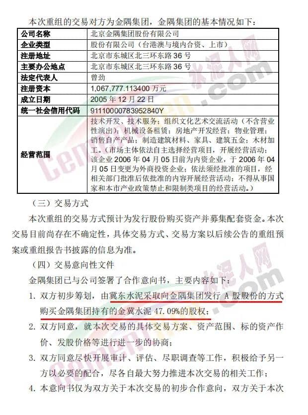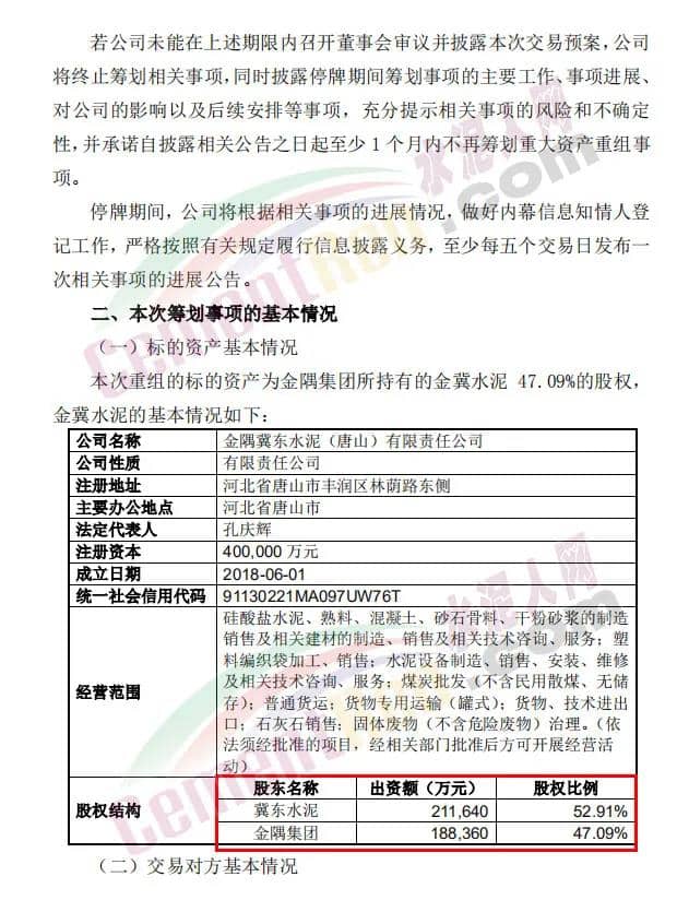 資料顯示,金冀水泥成立于2018年6月1日,注冊資本為400000萬元,經(jīng)營范圍為硅酸鹽水泥、熟料、混凝土、砂石骨料、干粉砂漿的制造銷售及相關建材的制造、銷售及相關技術咨詢、服務;塑料編織袋加工、銷售等。