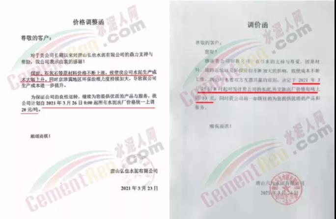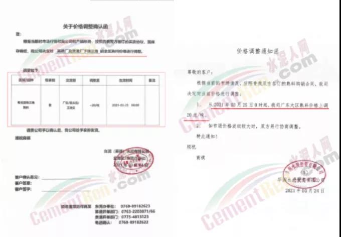 依據(jù)周邊市場價格,結(jié)合我公司實(shí)際情況,決定自2021年3月31日上午8:00開始,我公司2號線、3號線熟料價格上調(diào)20元/噸。