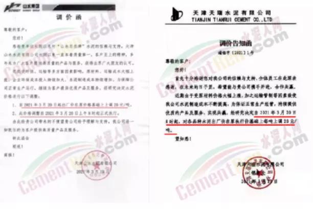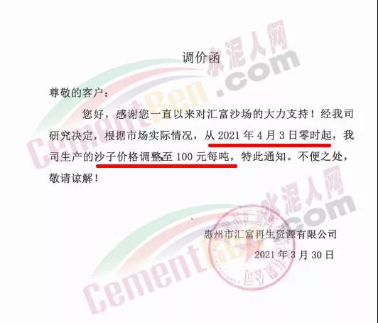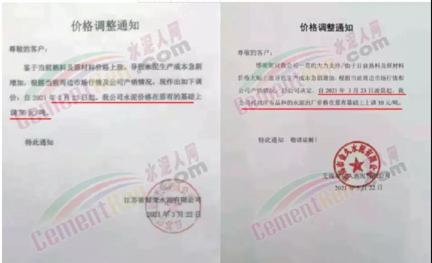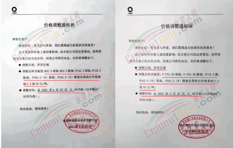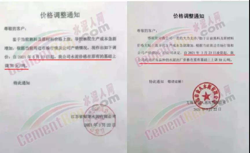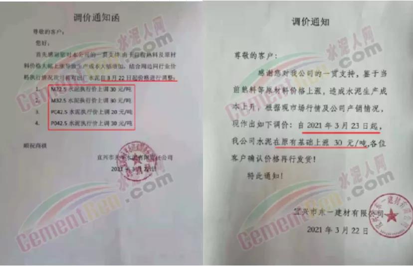 水泥調(diào)價通知