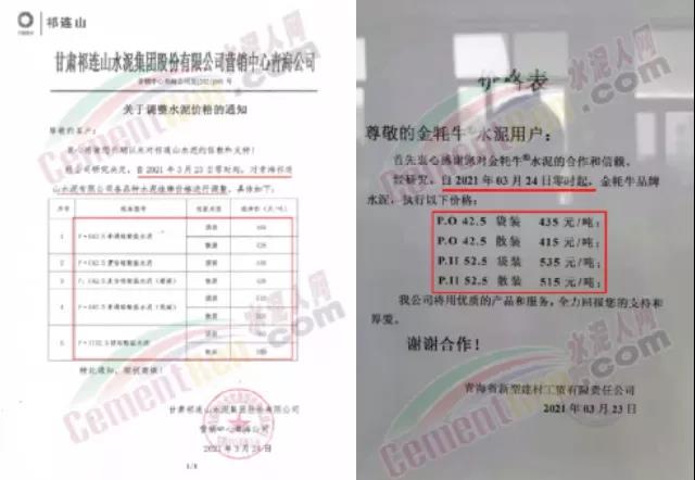 青?;ブ饒A水泥有限公司通知3月29日起水泥價格上調(diào)60元/噸。
