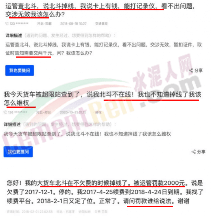 在大車司機(jī)心中,只是覺(jué)得“北斗”這個(gè)詞更像是一個(gè)令人畏懼的“瘟神”,不僅每年要花不少錢養(yǎng)在自己車上,還得祈求它千萬(wàn)不要出任何問(wèn)題,千萬(wàn)別掉線,否則最高達(dá)到5000元的罰款,或成為壓垮生活的的沉重負(fù)擔(dān)。