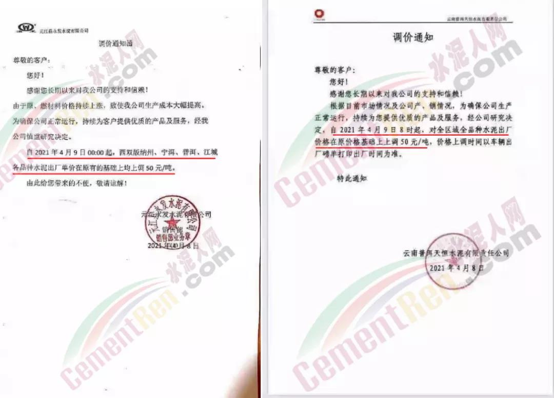 水泥人網(wǎng)通訊員消息:云南普洱西南水泥、普洱昆鋼嘉華水泥、云南尖峰水泥、景谷紅獅水泥、綠春縣共達(dá)水泥、元江永發(fā)水泥、普洱天恒水泥等多家水泥企業(yè)對(duì)全區(qū)域全品種水泥出廠價(jià)格在原價(jià)格基礎(chǔ)上上調(diào)50元/噸。