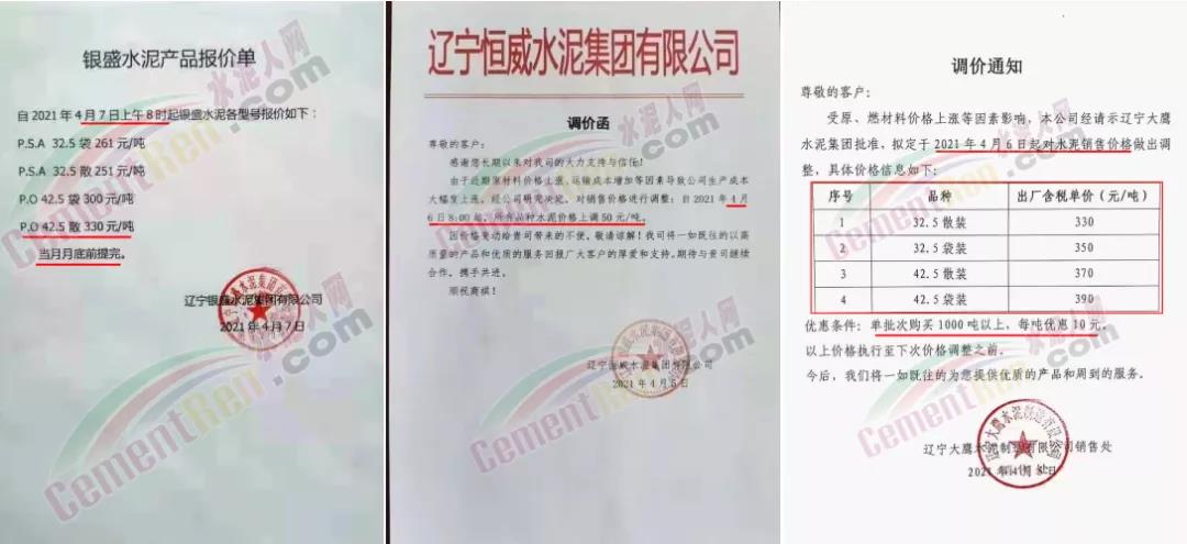 另有多家企業(yè)通知上調(diào)水泥價(jià)格,執(zhí)行最新開票價(jià)格單,其中PO42.5散裝水泥報(bào)價(jià)330-360元/噸。