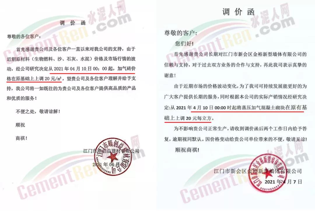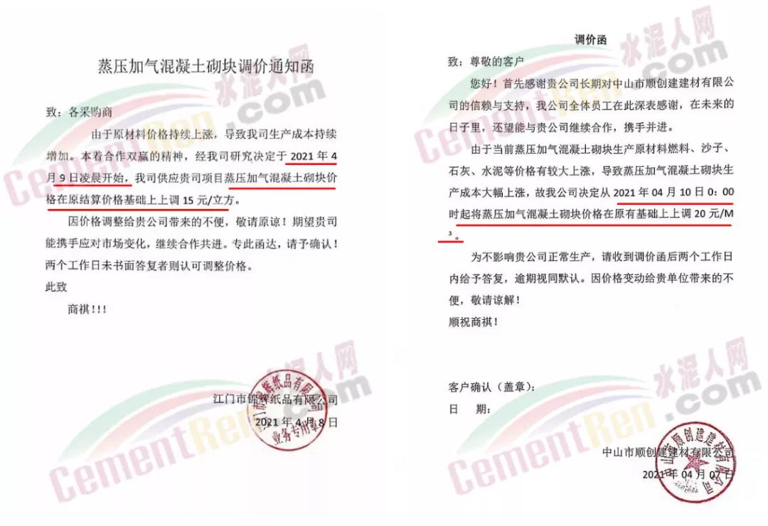 由于原材料價(jià)格持續(xù)上漲,蒸壓加氣混凝土砌塊企業(yè)陸續(xù)通知上調(diào)產(chǎn)品價(jià)格15-20元/立方。