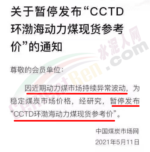 5月11日,中國煤炭市場網(wǎng)通知:“因近期煤市持續(xù)異常波動,為穩(wěn)定市場價(jià),經(jīng)研究,暫停發(fā)布環(huán)渤海動力煤現(xiàn)貨參考價(jià)... ...”