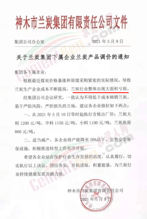 神木市蘭炭集團(tuán)有限責(zé)任公司通知,由于煤炭價(jià)格暴漲和原煤采購緊張的實(shí)際情況,導(dǎo)致蘭炭生產(chǎn)企業(yè)成本不斷提高,蘭炭行業(yè)出現(xiàn)大面積虧損。