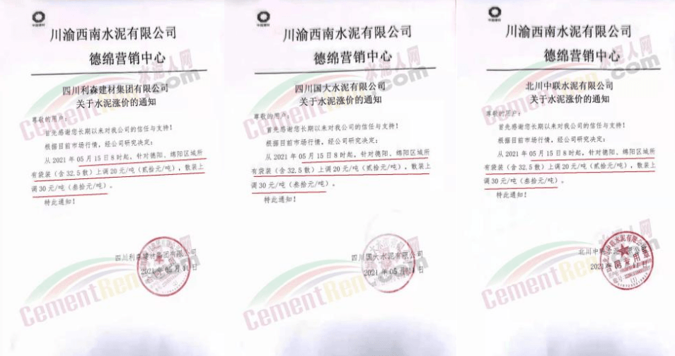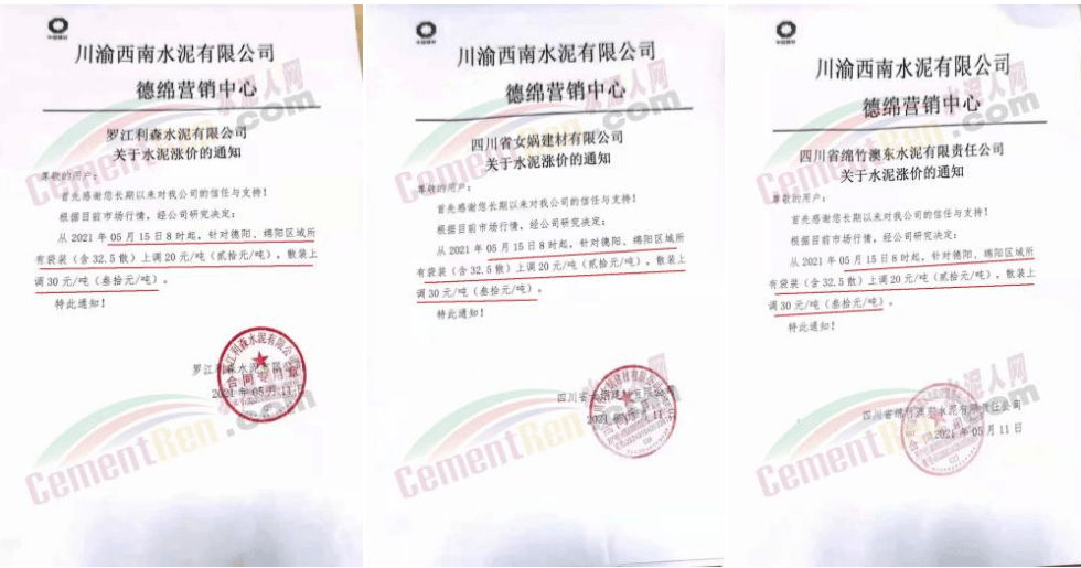 據(jù)四川德陽、綿陽地區(qū)水泥廠相關(guān)人員反饋,該廠采購的煤炭自春節(jié)以來,價(jià)格累計(jì)上漲180元/噸,目前到位價(jià)已經(jīng)超過1000元/噸。對水泥生產(chǎn)成本影響較大,而近期四川環(huán)保整治力度加強(qiáng),水泥廠熟料線執(zhí)行錯峰生產(chǎn),整體熟料庫存低位,區(qū)域主要品牌企業(yè)已經(jīng)通知5月15日德綿陽地區(qū)水泥價(jià)格上漲20-30元/噸。