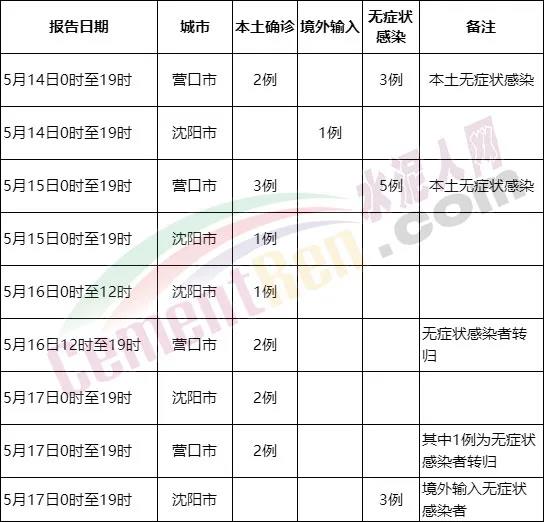 遼寧自5月14日開始出現(xiàn)本土病例:5月14日,遼寧新增2例本土確診、3例無癥狀感染者;5月15日新增4例本土確診、5例無癥狀感染者;5月16日新增3例本土確診病例。5月17日新增4例本土新冠肺炎確診病例,新增3例境外輸入無癥狀感染者。