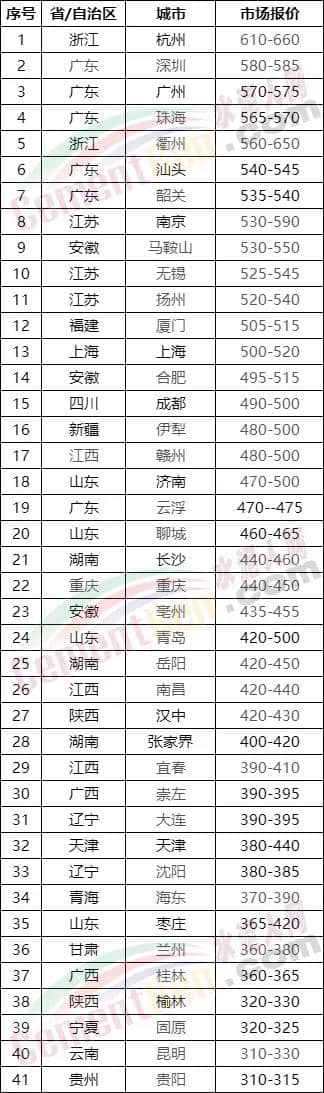 5月17日部分區(qū)域PO42.5散裝水泥市場報價