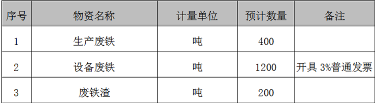 1.公示及報名時間:2021年7月6日8:00至2021年7月8日18:00,報名材料統(tǒng)一發(fā)郵箱:fshl_2011@126.com(期間可現(xiàn)場查看廢舊物資,報名需提供公司資質(zhì)材料、身份證復印件及法人代表授權(quán)書等材料,同步審查資質(zhì)材料)。