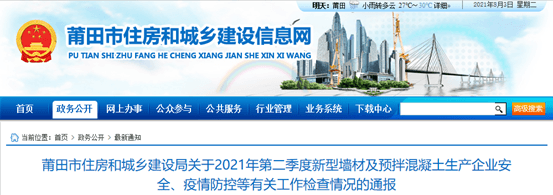 福州城鄉(xiāng)建設(shè)局《關(guān)于2021年第一季度預(yù)拌混凝土企業(yè)資質(zhì)動(dòng)態(tài)核查情況的通報(bào)》