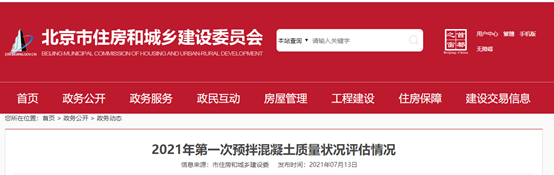 北京市住房和城鄉(xiāng)建設(shè)委員會(huì)發(fā)布《2021年第一次預(yù)拌混凝土質(zhì)量狀態(tài)評(píng)估情況》