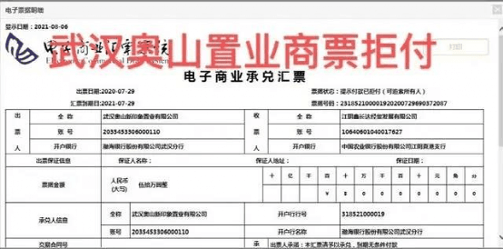 知情人士稱,“武漢奧山新印象置業(yè)有限公司的商票從2020年年底開始,其拒付情況就比較嚴(yán)峻。有不少保理公司都沒太敢去接觸該企業(yè)的商票。一持票人所持有的2021.3.7日到期的奧山置業(yè)商票,還在拒付中。”