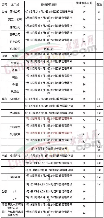 山東省水泥熟料企業(yè)2021年8月份夏季錯(cuò)峰生產(chǎn)的通知要求山東省內(nèi)72家企業(yè)從8月11日0點(diǎn)-8月30日24點(diǎn)停窯限產(chǎn)20天。