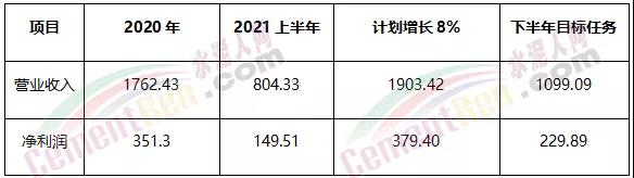 如2021年完成增收8%的目標(biāo),營業(yè)收入就要達(dá)到1903.44億元,凈利潤達(dá)到379.4億。除去上半年已經(jīng)完成的,下半年?duì)I業(yè)收至少達(dá)到1099.09億元,凈利潤達(dá)到229.89億元,任務(wù)之艱巨可想而知。